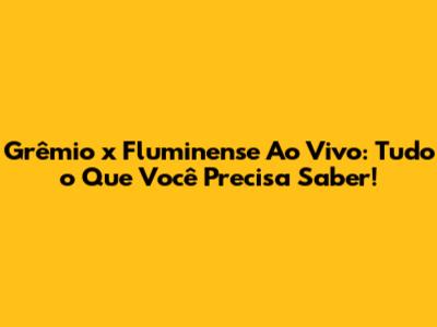 Grêmio X Fluminense Ao Vivo: Onde Assistir E Mais!