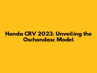 Honda CRV 2023: Unveiling The Oschondasc Model