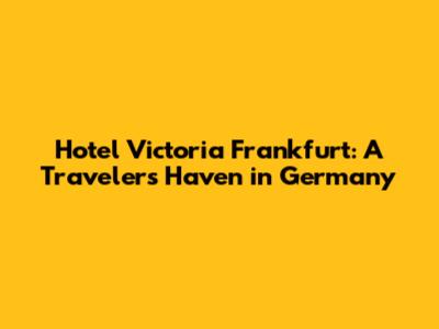 Hotel Victoria Frankfurt: Your Guide To A Great Stay