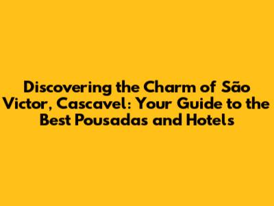 São Victor, Cascavel, is a hidden gem waiting to be discovered. Whether you choose to stay in a charming pousada or a comfortable hotel, your experience will be filled with unforgettable moments. So pack your bags, plan your itinerary, and get ready to explore the beauty and culture of this incredible region. Safe travels, and enjoy every moment of your adventure!