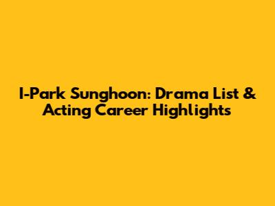 I-Park Sunghoon: Drama List & Acting Career Highlights