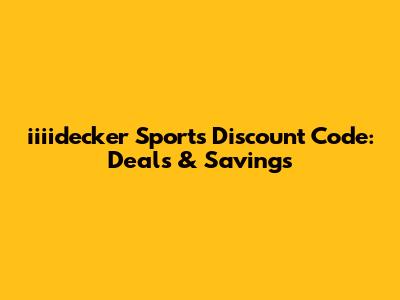 Iiiidecker Sports Discount Code: Deals & Savings