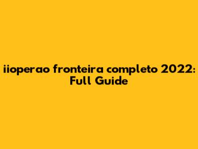 Hey guys! Are you ready to dive deep into the world of "iioperao fronteira completo 2022"? Buckle up because we're about to explore everything you need to know. This comprehensive guide is designed to give you all the juicy details, so you're totally in the loop. Let's get started!
