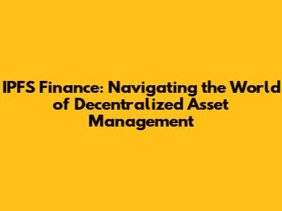 The Future of IPFS Finance and Asset Management