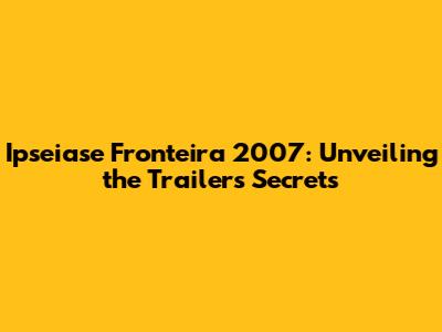 Ipseiase Fronteira 2007: Trailer Deep Dive