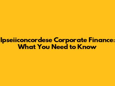 Ipseiiconcordese Corporate Finance: What You Need To Know