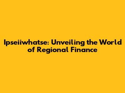 Hey guys! Ever heard of ipseiiwhatse? No? Well, get ready to dive into the fascinating world of regional finance! This isn't just some dry, boring topic – it's about the lifeblood of economies, the engines that drive growth, and the stories behind how money flows in specific areas. Let's break down exactly what ipseiiwhatse is, why it matters, and how it impacts you, me, and everyone else. Think of it as a deep dive into the financial health of particular regions, the strategies they employ, and the challenges they face. We’re talking about everything from small towns to bustling metropolitan areas and the intricate financial ecosystems that support them. We'll explore the tools, players, and trends that define regional finance, offering you a comprehensive understanding of this critical aspect of modern economies. This deep dive into regional finance aims to give you a clear picture of its significance and how it shapes the financial landscape around us, making it relevant to almost everyone.