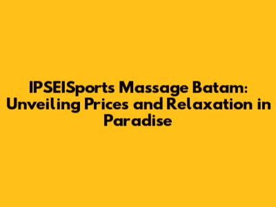 Hey there, wellness enthusiasts! Are you dreaming of a rejuvenating escape? If you're in Batam and craving a massage, you're in the right place. Today, we're diving deep into the world of IPSEISports Massage Batam, exploring everything from services offered to, you guessed it, the all-important prices. So, buckle up, relax, and let's embark on this journey to discover how you can unwind and revitalize with a fantastic massage experience. This article will be your go-to guide for all things IPSEISports massage in Batam, providing you with valuable insights, practical tips, and everything you need to know to make the most of your relaxation time.