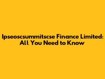 Ipseoscsummitscse Finance Limited: All You Need To Know
