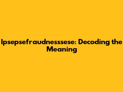 Ipsepsefraudnesssese: Decoding The Meaning