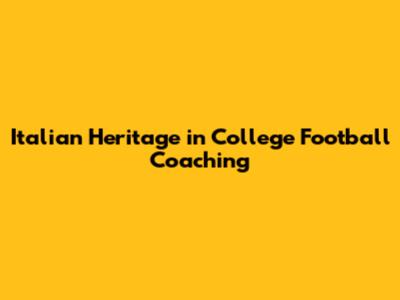 Italian Heritage In College Football Coaching