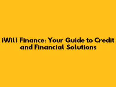 IWill Finance: Your Guide To Credit And Financial Solutions