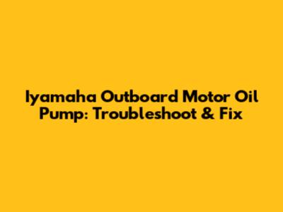 Iyamaha Outboard Motor Oil Pump: Troubleshoot & Fix