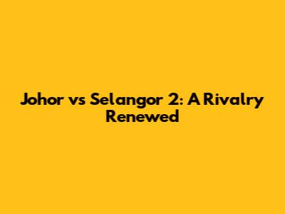 Johor Vs Selangor 2: A Rivalry Renewed