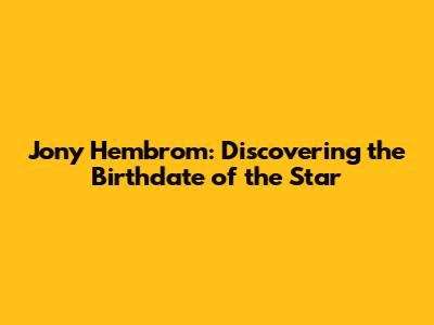 Alright, let's dive into the details about Jony Hembrom, focusing on something many fans and followers are curious about: his date of birth. Knowing when a personality like Jony was born can provide a deeper connection and understanding of their journey. So, let's get right to it and explore what makes this information so interesting and valuable.