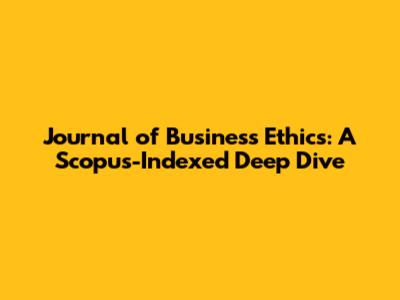 Journal Of Business Ethics: Scopus Indexed Guide