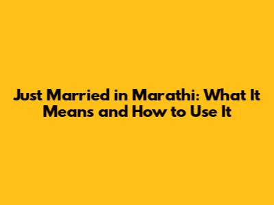 Just Married In Marathi: Meaning And Usage