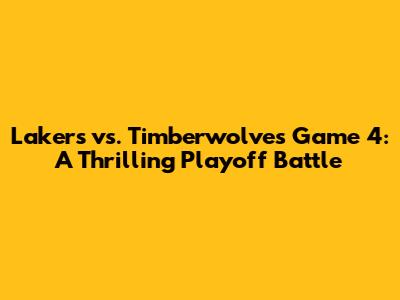 Lakers Vs. Timberwolves Game 4 Showdown: Score And Highlights