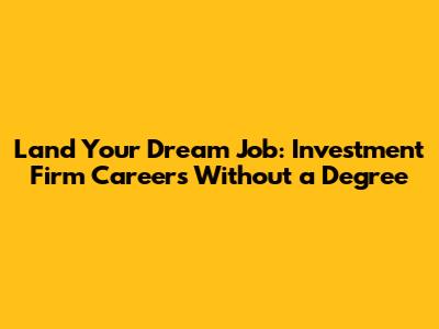 Land Your Dream Job: Investment Firm Careers Without A Degree