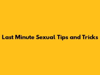 Last Minute Sexual Tips And Tricks