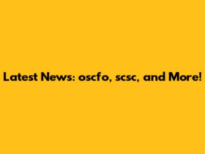 Latest News: Oscfo, Scsc, And More!
