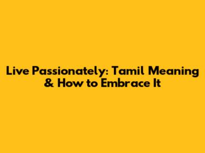 Live Passionately: Tamil Meaning & How To Embrace It