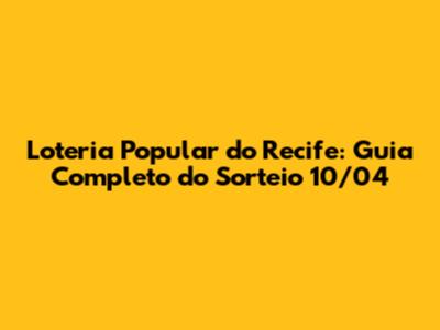 Loteria Popular Do Recife: Tudo Sobre O Sorteio 10/04