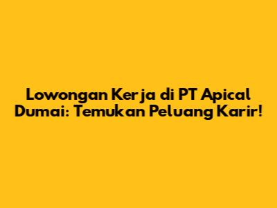 Lowongan Kerja PT Apical Dumai: Temukan Peluang Karir!