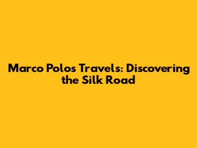Marco Polo's Travels: Discovering The Silk Road