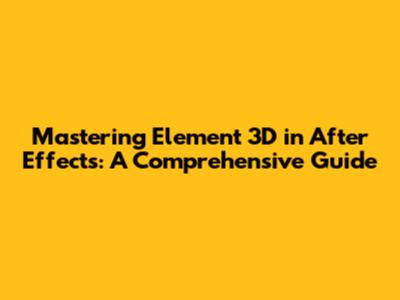 Mastering Element 3D In After Effects: A Comprehensive Guide