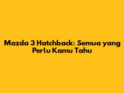Mazda 3 Hatchback: Semua Yang Perlu Kamu Tahu