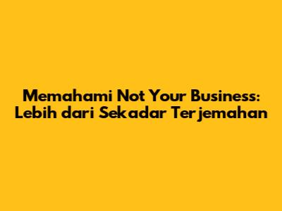 Memahami 'Not Your Business': Terjemahan & Makna Mendalam