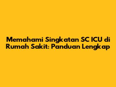 Apa Itu Singkatan SC ICU?