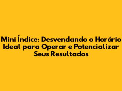 Ate que Horas Operar Mini Indice: O Horário de Negociação e Seus Impactos