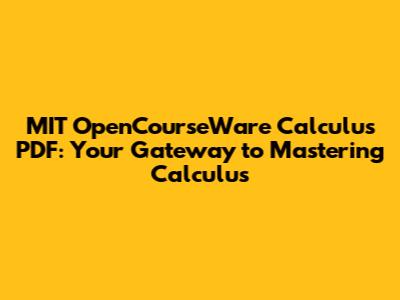 Hey guys! Are you ready to dive into the fascinating world of calculus? Look no further! MIT OpenCourseWare offers an incredible resource for learning calculus, and the best part is, it's all available in PDF format for free! In this article, we'll explore what MIT OpenCourseWare Calculus is all about, why it's such a valuable tool, and how you can make the most of these resources to conquer calculus. Let's get started!