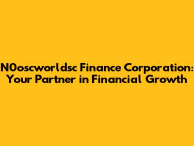 N0oscworldsc Finance Corp: Your Financial Partner