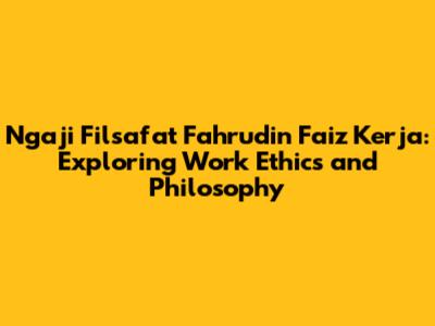Hey guys! Ever felt like your job is just… a job? Like you're clocking in, clocking out, and not really feeling connected to what you're doing? Well, you're not alone. Many of us grapple with finding meaning and purpose in our work. That's where Ngaji Filsafat with Fahrudin Faiz comes in! This series delves deep into philosophical concepts, and guess what? It also touches upon the philosophy of work. In this article, we're going to explore how Fahrudin Faiz's insights can help us rethink our approach to work, making it more fulfilling and meaningful. So, buckle up and let's dive into the fascinating world of philosophy and work!