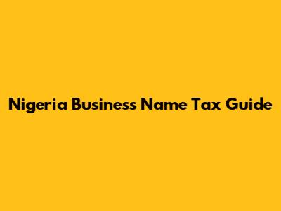 Nigeria Business Name Tax Guide