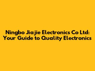Ningbo Jiajie Electronics: Your Guide To Quality Electronics