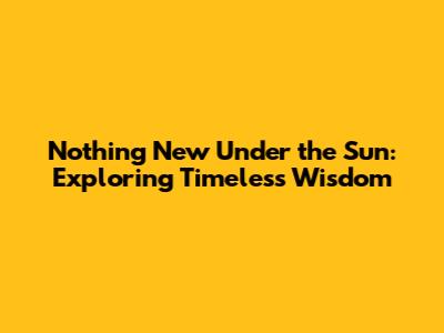 Nothing New Under The Sun: Exploring Timeless Wisdom