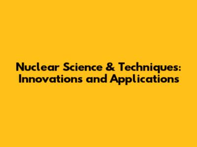 Nuclear Science & Techniques: Innovations And Applications