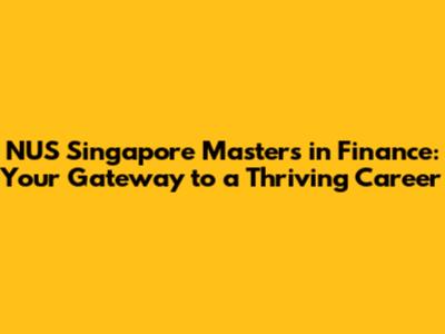 NUS Singapore: Your Path To A Finance Masters