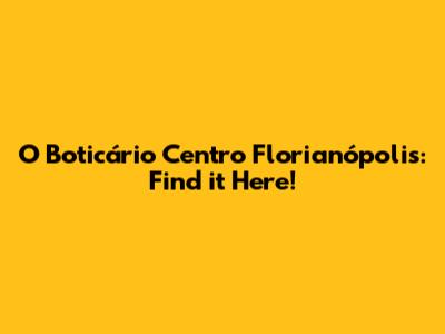 O Boticário In Centro Florianópolis: Find It Here!