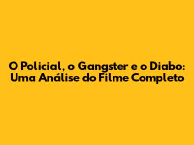 O Policial, O Gangster E O Diabo: Uma Análise Do Filme Completo