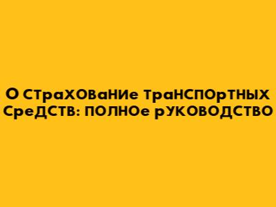O Страхование Транспортных Средств: Полное Руководство
