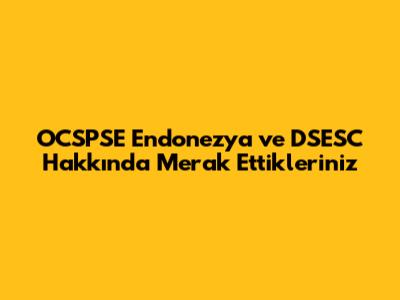OCSPSE Endonezya Ve DSESC Hakkında Merak Ettikleriniz