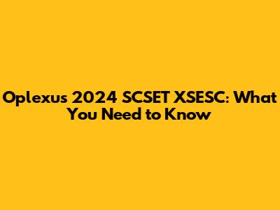 Oplexus 2024 SCSET XSESC: What You Need To Know