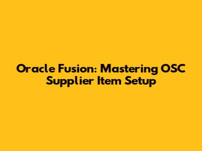 Oracle Fusion: Mastering OSC Supplier Item Setup