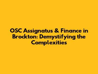 OSC Assignatus & Finance: Your Brockton Guide