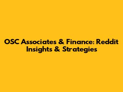 OSC Associates & Finance: Reddit Insights & Strategies